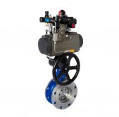 D671X氣動蝶閥采用新型系列GT型氣動執行器,有雙作用式和單作用式(彈簧復位),齒輪傳動,安全可靠;大口徑閥門采用系列AW型氣動執...